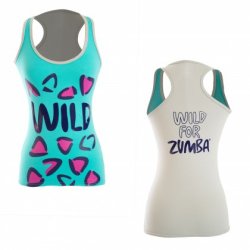 If "WILD" is how you describe your Zumba classes, then the Wild for Zumba Racerback is for you! There's no mistaking it! This racerback spells out "WILD" on its colorful front, but once you turn around, it's a different color on the back. Now that's one wild statement! Color: Aqua with Navy, Pink/Purple & Gray 90% Cotton, 10% spandex